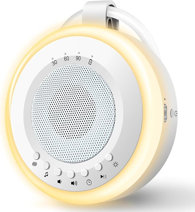 Máquina de Ruido Blanco para Dormir Bebé: Easy@Home Aparato de 20 Sonidos Relajantes con Luz Nocturna Ajustable & Temporizador丨Recargable por USB丨para bebé niño o adulto (Blanco)
