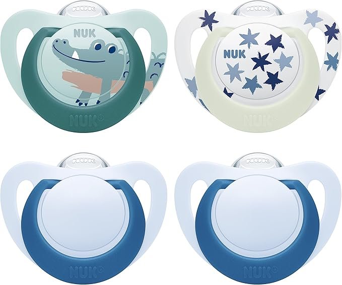 NUK Star Day & Night chupete | 18-36 meses | Calma al 99 % de los bebés | Chupetes de silicona sin BPA | Brilla en la oscuridad para encontrarlo por la noche | Cocodrilo | 4 unidades