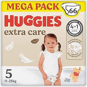 Huggies Extra Care Pañal para bebé con diseños Disney Talla 5 (12-22 kg), 2 packs x 33 pañales, 66 pañales con almohadillas extra suaves que cuida de la piel del bebé