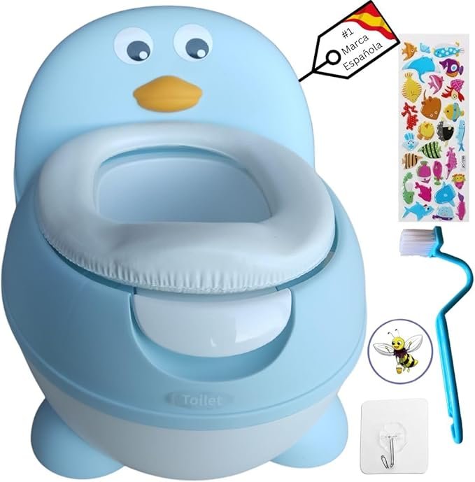 Orinal bebe 2 años Pingüino Azul | Vater para niños que aprenden a ir al baño | +18 Meses | Cómodo, Seguro y Divertido | Con Base Antideslizante y Accesorios Incluidos